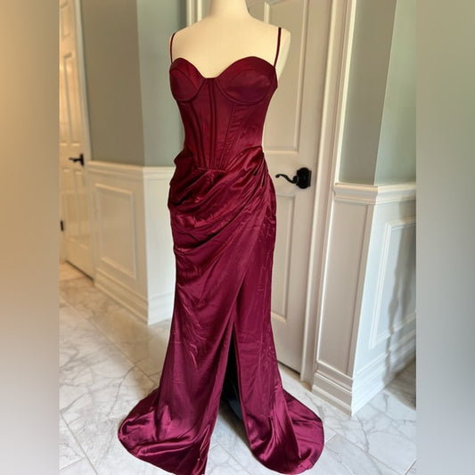 Burgundy elegant fashion new arrival exquisite corset long satin floor-length sexy slit ball gown evening dress party dress nv3647