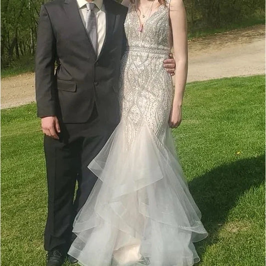 Champagne Elegant Round Neck Sleeveless Mermaid Long Chiffon prom dress Evening Dress Party Dress nv3748