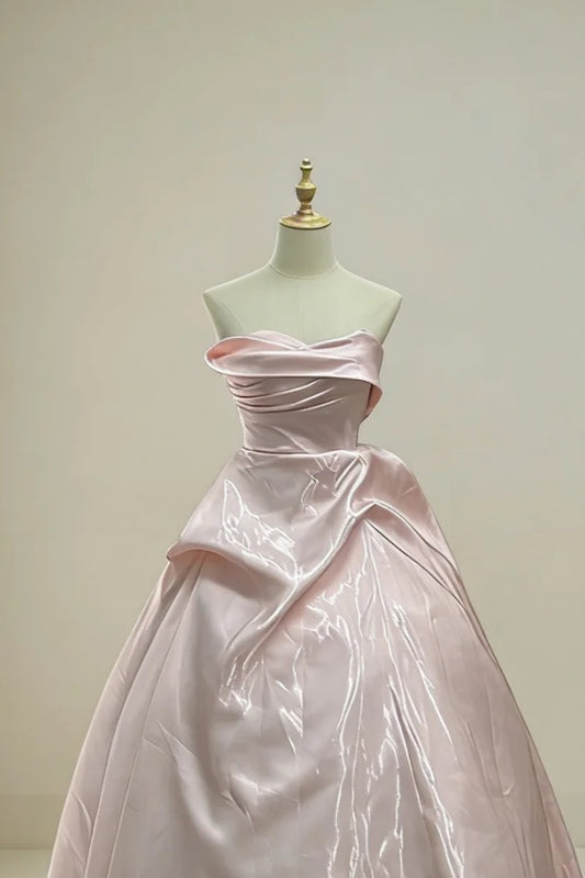 Pink Strapless Satin Ball Gown with Structured Ruched Bodice NV6870