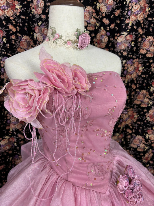 Pink floral beaded princess long satin ball gown evening dress quinceanera dress nv4649