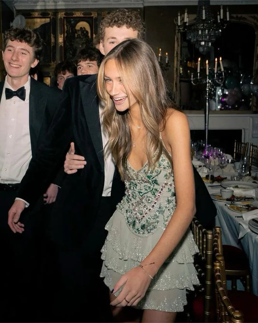 Green shiny floral fashion short ruffle chiffon homecoming dress birthday party dress nv5282