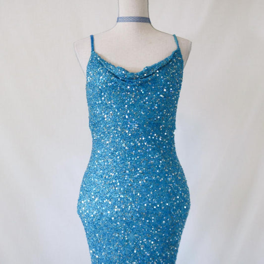 Vintage aqua blue beaded sequined long formal prom dress, evening gown, party dress nv4986