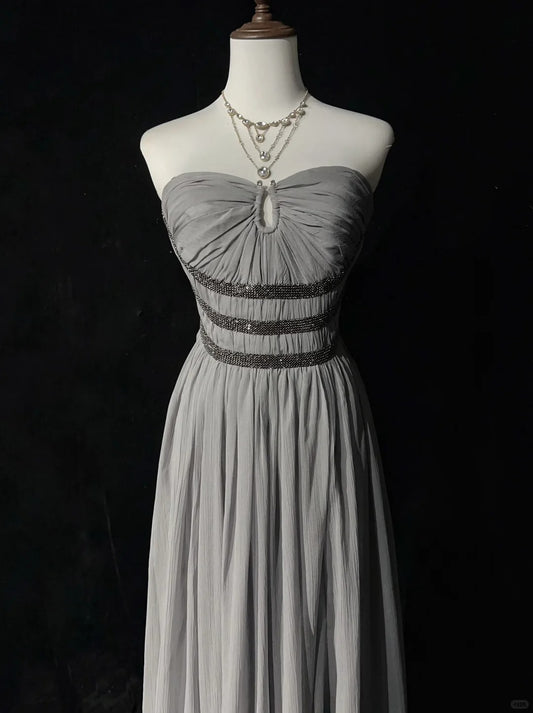 Grey Beaded Elegant Long Chiffon Prom Dres Evening Dress nv4928