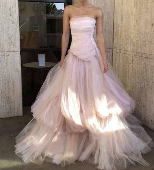Light pink tulle elegant long ball gown evening dress bridal shower guest dress nv268