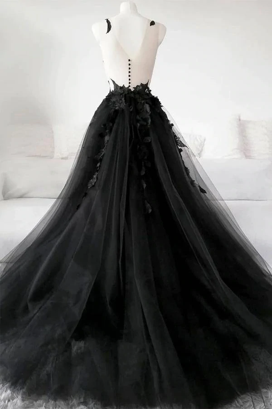 Black Lace Tulle Long Prom Gown Black Evening Dress nv42
