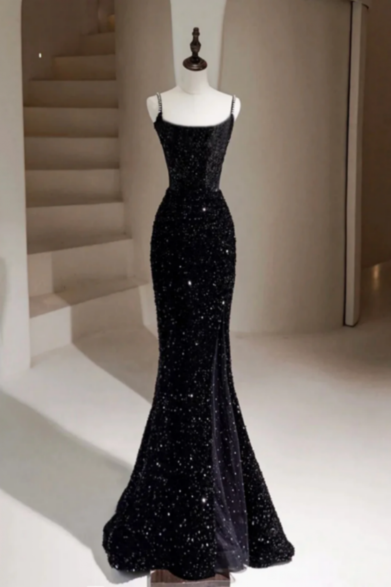 Black Mermaid Sequins Long Prom Dresses Formal Evening Dresses nv1556