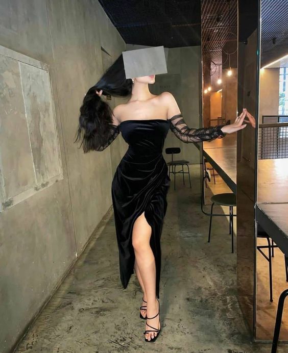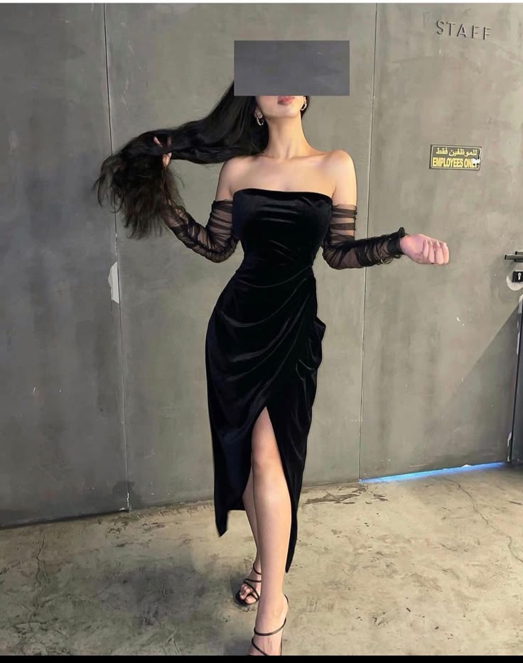 Black retro simple elegant velvet with tulle long sleeves long ball gown evening dress party gift nv2595