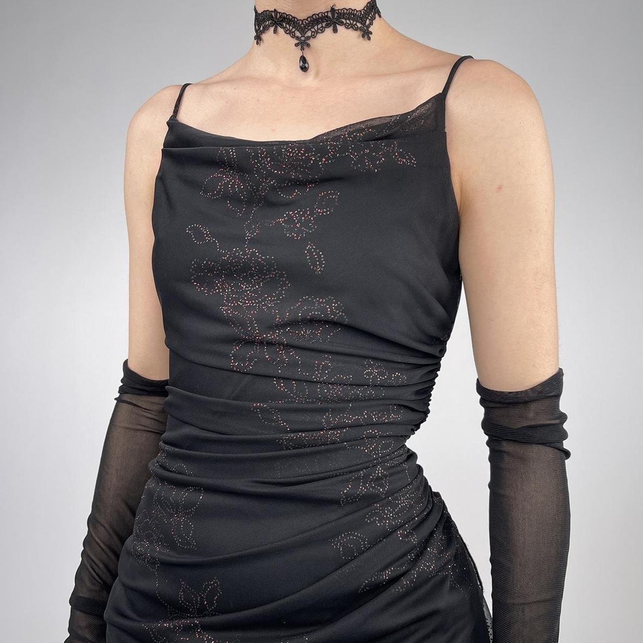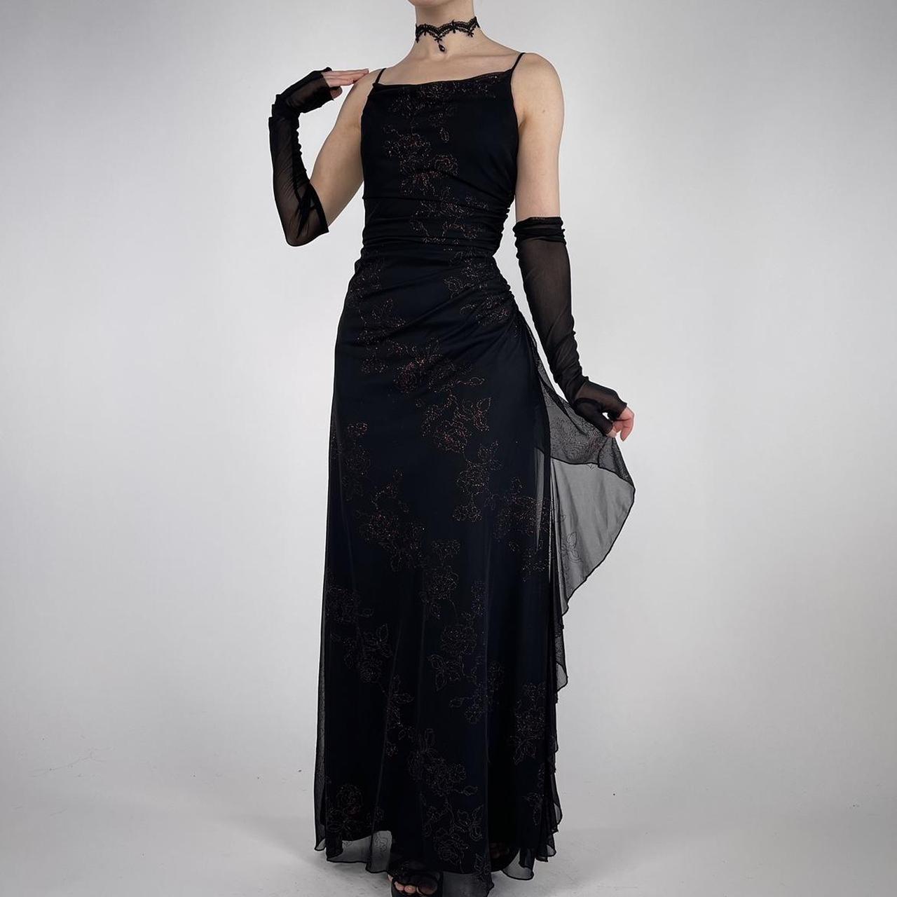 Black shiny vintage fashion exquisite floral beading spaghetti straps long elegant Chiffon ruffles ball gown evening dress party dress prom dress nv3756