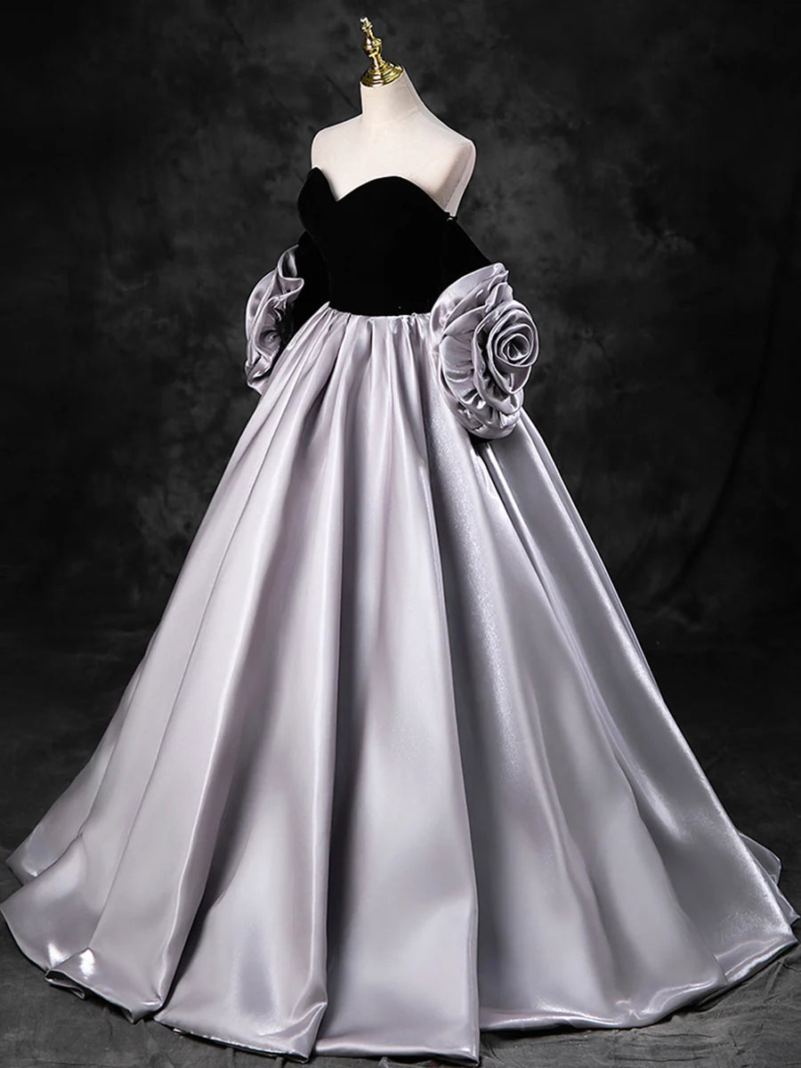 Black Sweetheart Neck Velvet Floor Length Formal Dress, Detachable off Shoulder Chic Party Dress nv1425