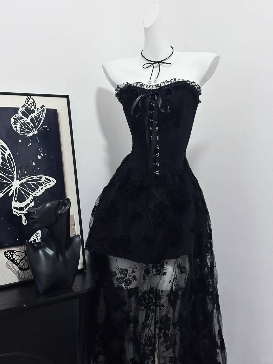 Black Vintage Elegant Delicate Lace Long Homecoming Dress Prom Dress Evening Dress Birthday Party Dress Prom Dress nv4048