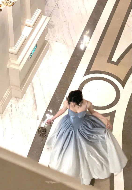 Blue A-line Strap Sequined Long Ball Gown Formal Evening Dress nv2821