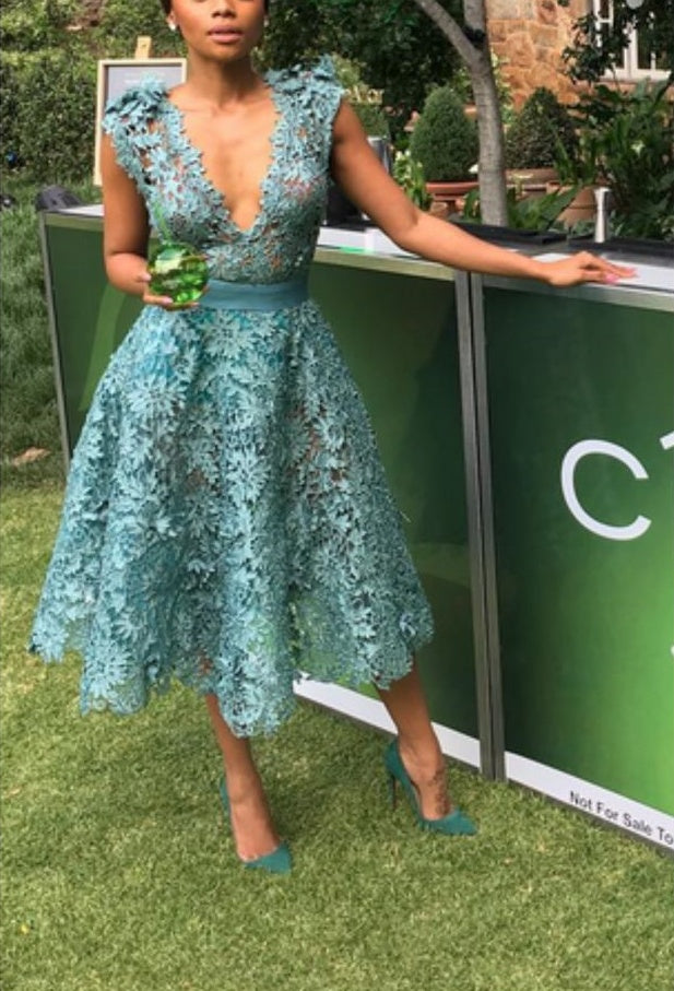Blue Lace Sexy Deep V Neck Midi/Short Homecoming Dress Prom Dress Evening Dress Party Dress nv1128