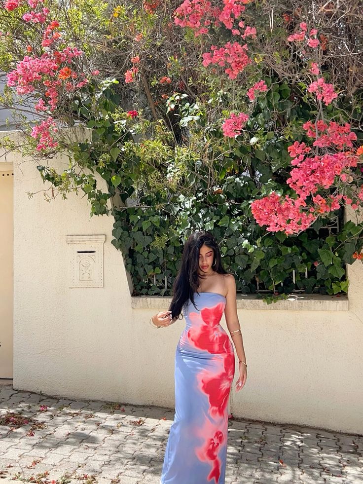 Blue Elegant Floral Strapless Long Ball Gown Evening Dress Seaside Holiday Party Dress nv2799