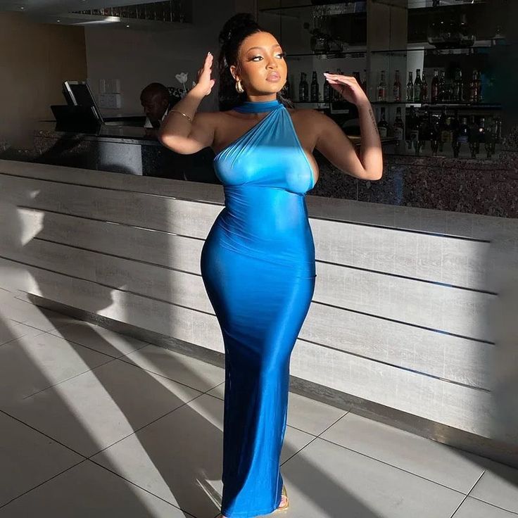 Blue simple fashion elegant gradient one shoulder slim long ball gown prom dress evening dress party dress nv2625