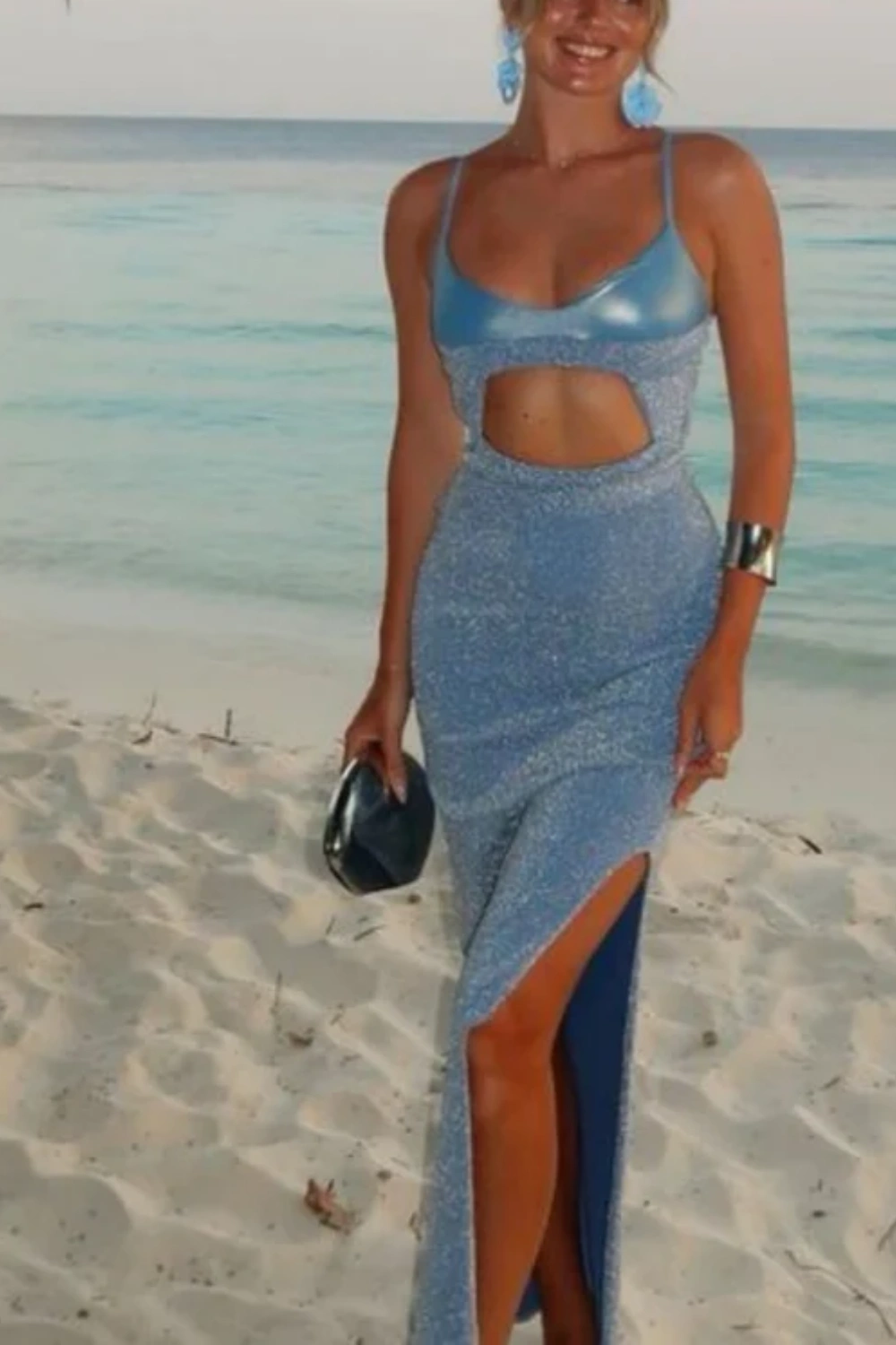 Blue Sparkling Sequin Long Prom Gown Party Dress nv5189