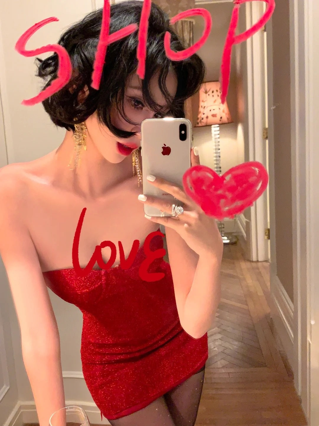Bright Red Sequin Bandeau Mini Dress: Back Lace-up, Fitted Bodycon, Party Centerpiece Gown NV6412
