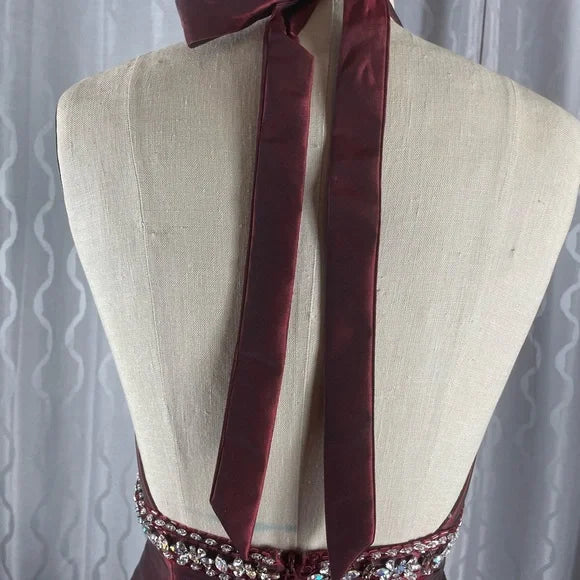 Burgundy Fashion Elegant Exquisite Beaded Strapless A-Line Long Satin Formal Prom Dress Evening Dress Party Dress nv3687