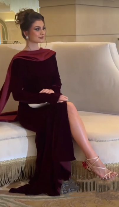 Burgundy noble and elegant backless beaded ribbon impressive long velvet ball gown evening dress party dress nv2597