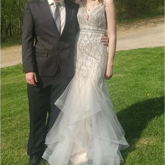Champagne color gorgeous shiny fashion V-neck exquisite beading beautiful floor-length ruffled tulle ball gown evening dress party dress nv3620