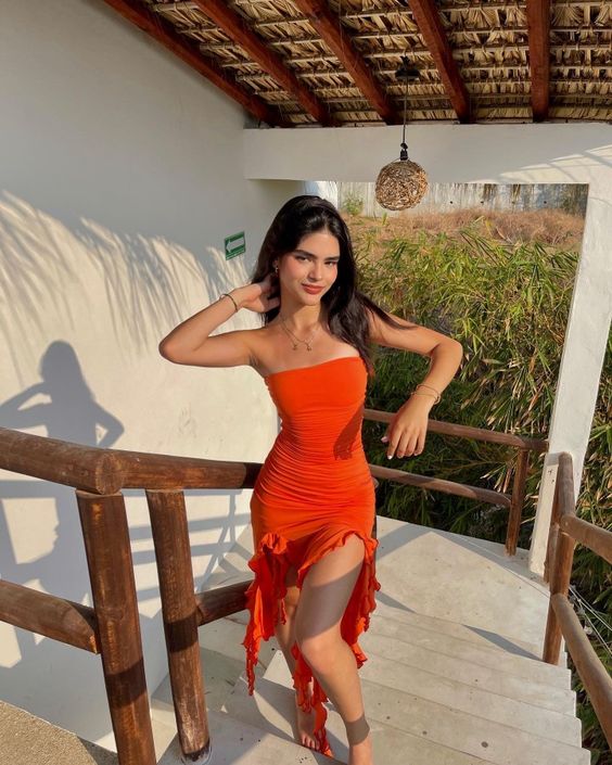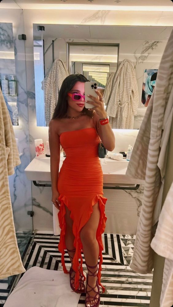 Charming charm ruffle high slit tube top dress party dress prom dress evening dress nv1830