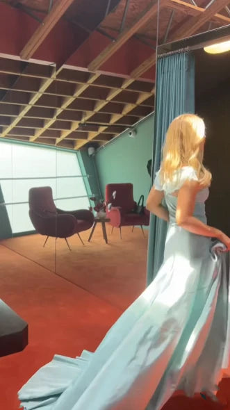 Classy Mermaid Off The Shoulder Light Sky Blue Satin Evening Dress Prom Dresses nv4152