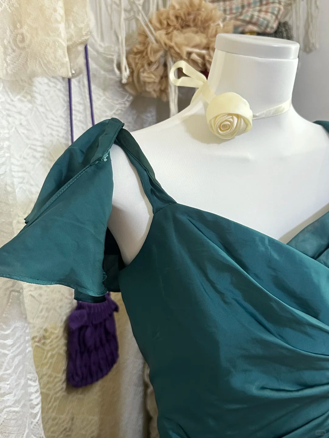 Dark green vintage short satin homecoming dress birthday party dress nv5087