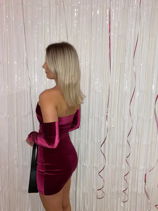 Fuchsia Off Shoulder Bodycon Velvet Homecoming Dress Short Evening Gown Party Dress nv1885