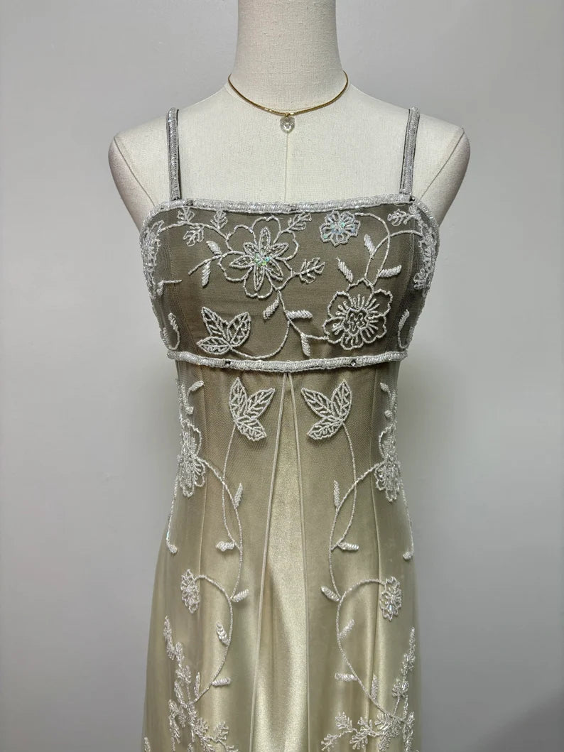 Gold yellow retro fashion gradient exquisite beaded long tulle ball gown, evening dress, party dress nv3701