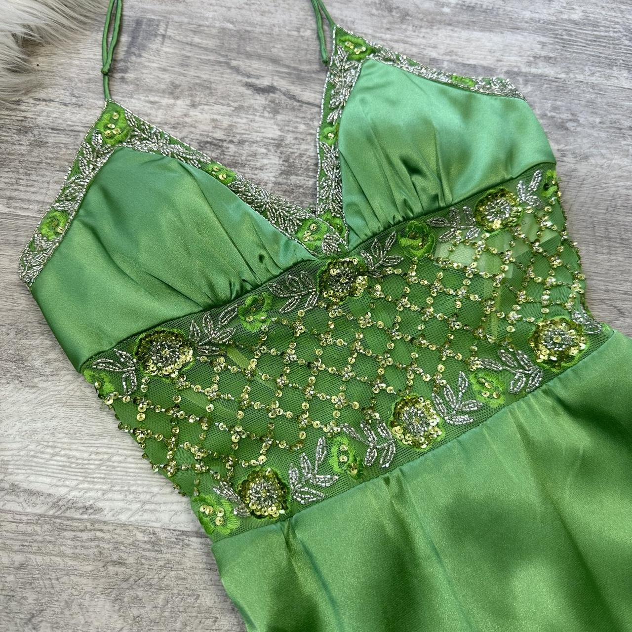 Green Beaded Shiny Elegant Long Satin Ball Gown Evening Gown Party Dress nv4562