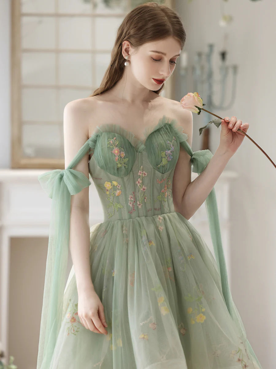 Lovely High Low Lace Party Dress, Green Tulle Short Prom Dress, Green Homecoming Dress nv1639