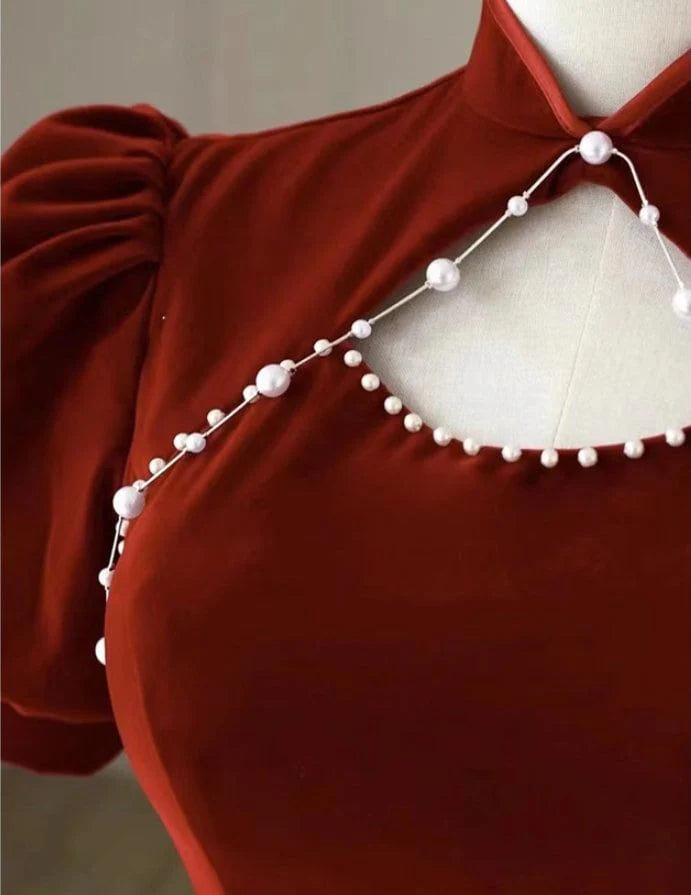 New red ladies long beaded high-end ball gown evening dress Chinese cheongsam nv1818