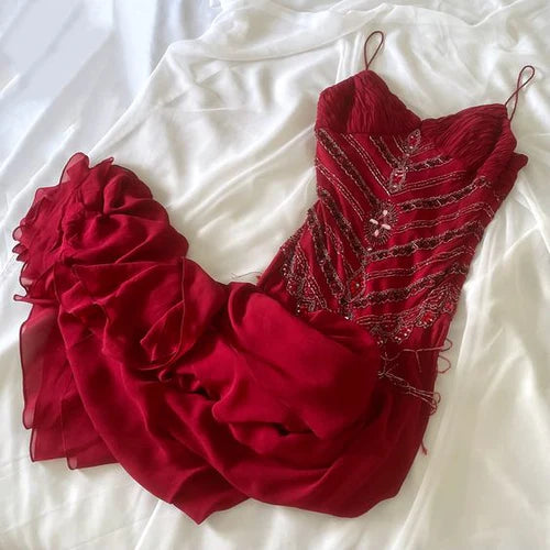 NiceVestidos--Burgundy exquisite beaded spaghetti strap long chiffon fairy dress ball gown evening dress NV5725