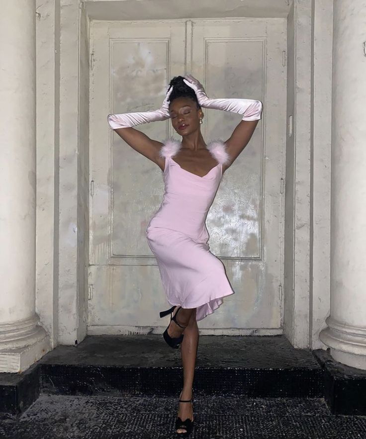 Pink Fashion Furry Strap Midi Satin Homecoming Dress Christmas Holiday Party Dress nv3119