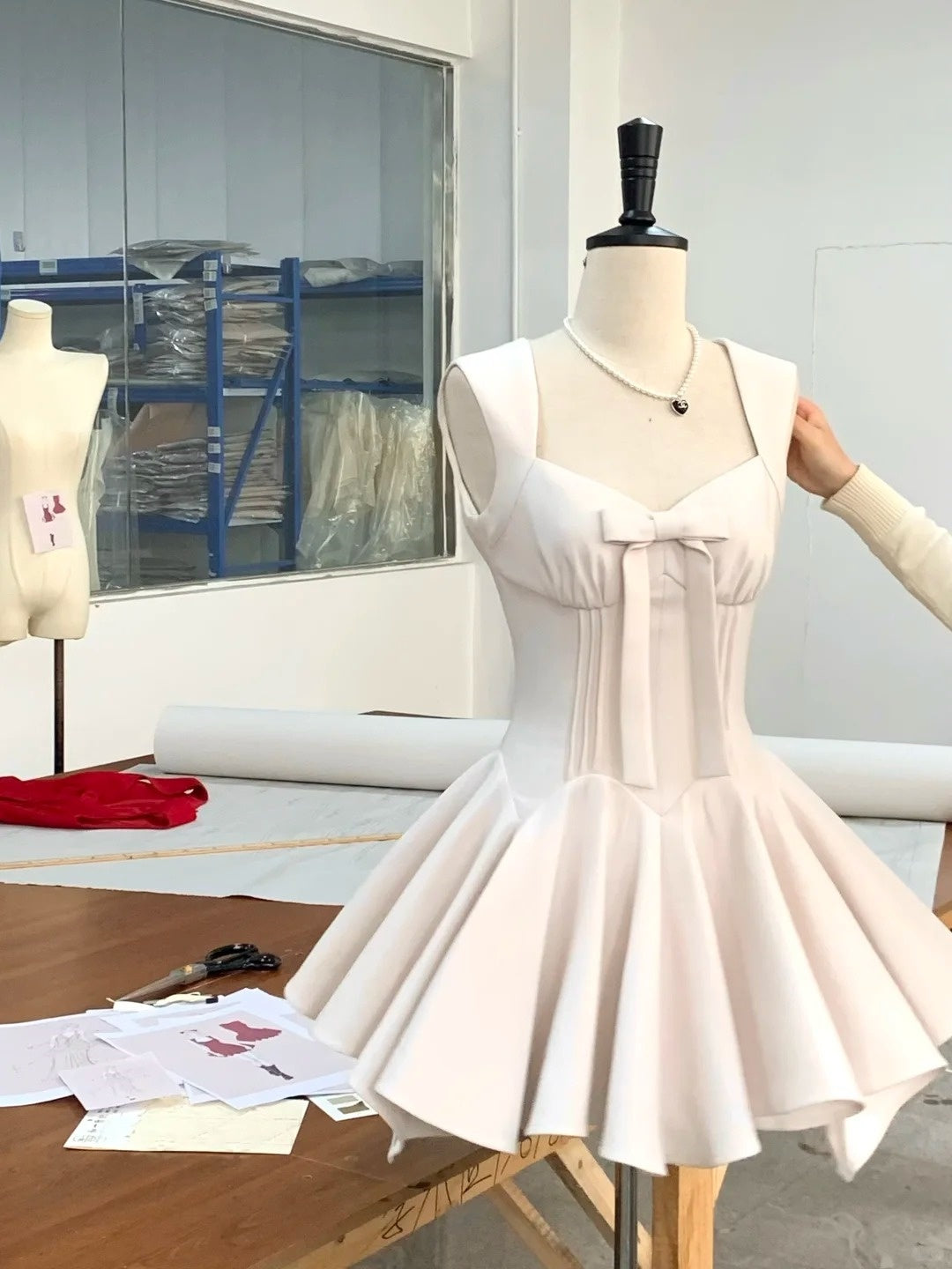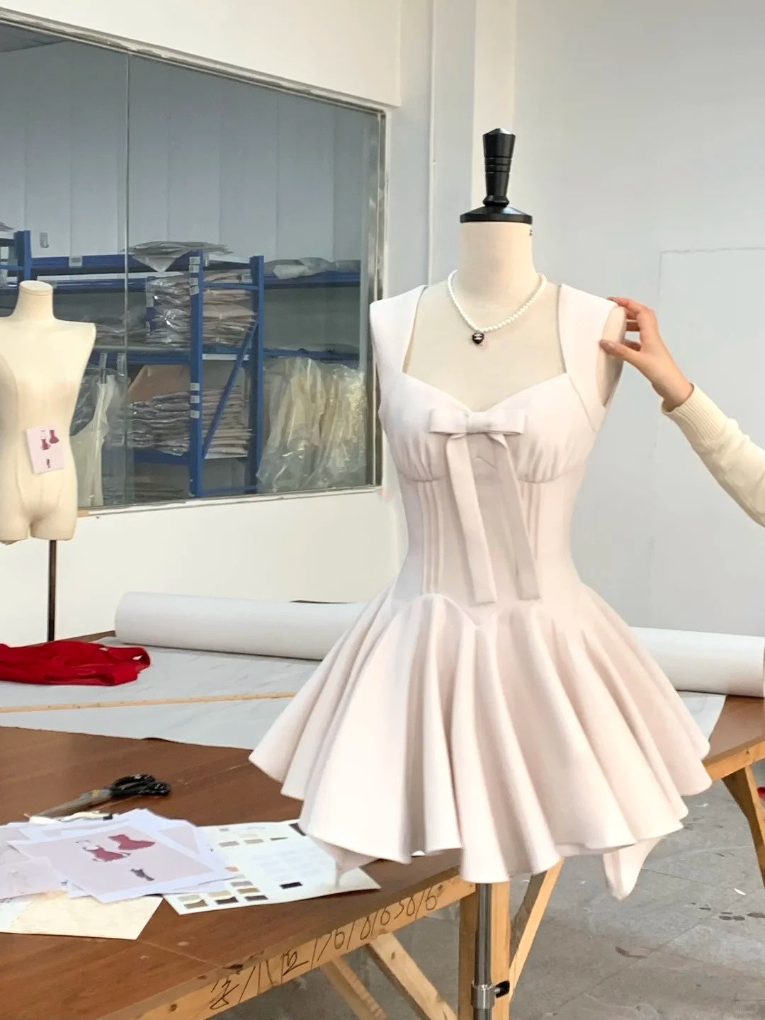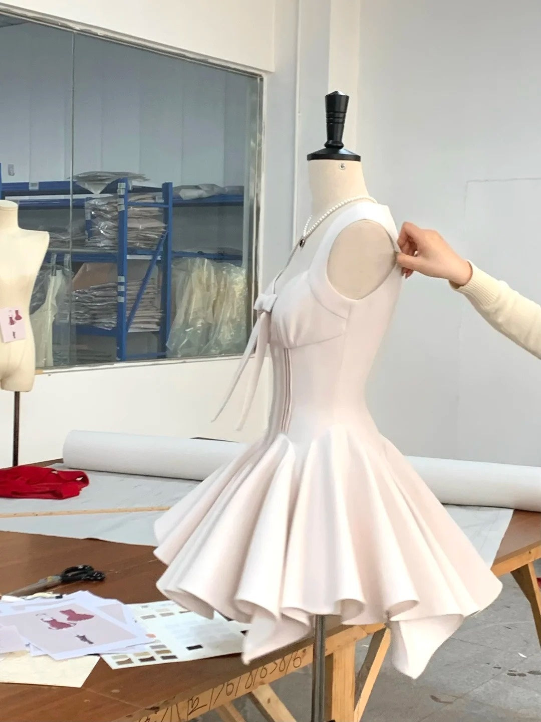 Pink Fashion Sweet Bow Short satin Homecoming Dress Prom Dress Birthday Dress nv4512
