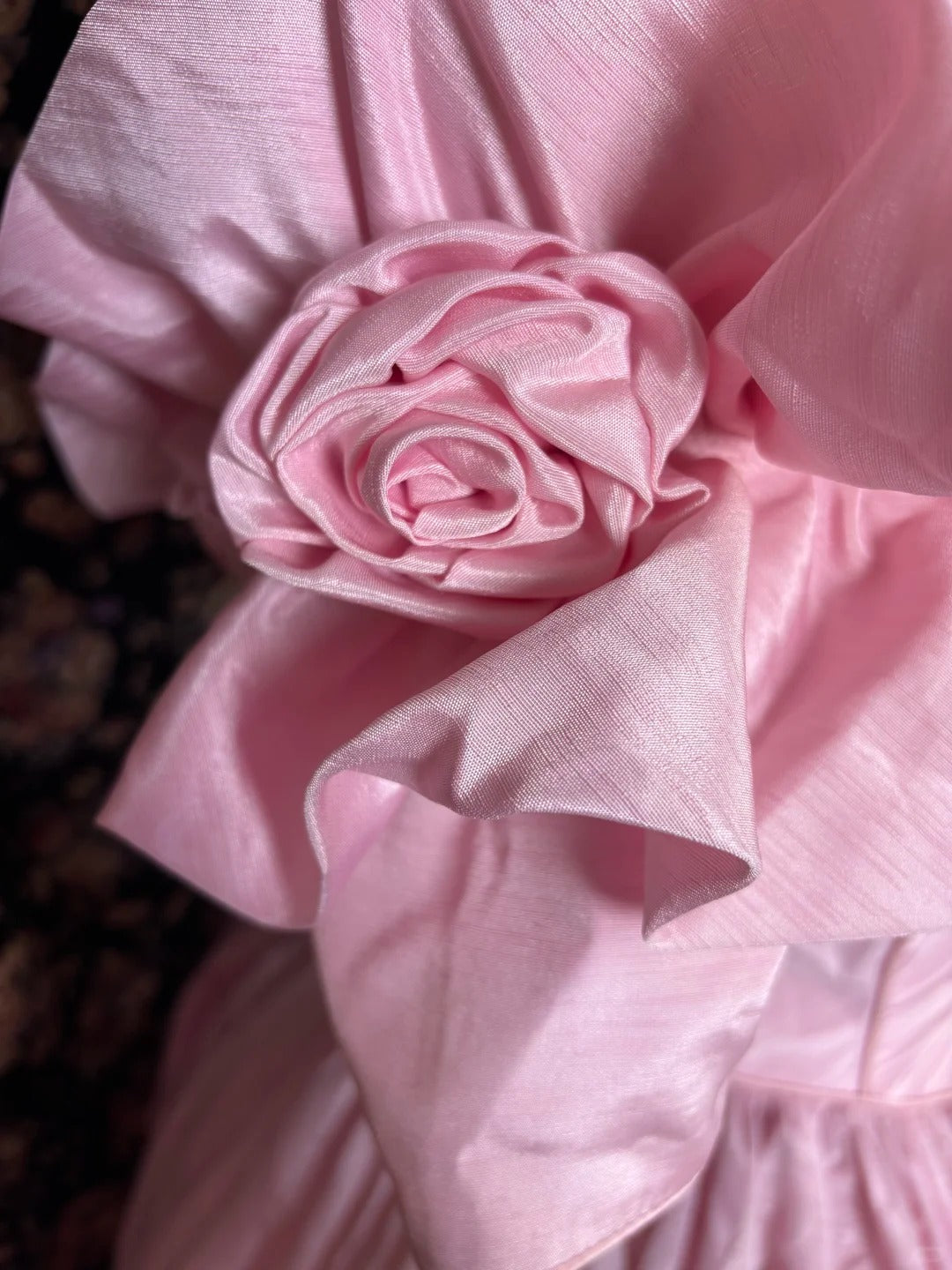 Pink floral beaded princess long satin ball gown evening dress quinceanera dress nv4649