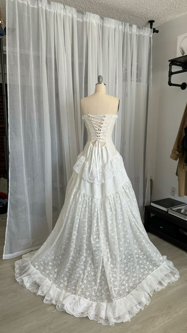 White Elegant Lace Tulle Long Ball Gown Evening Gown Wedding Dress nv2816