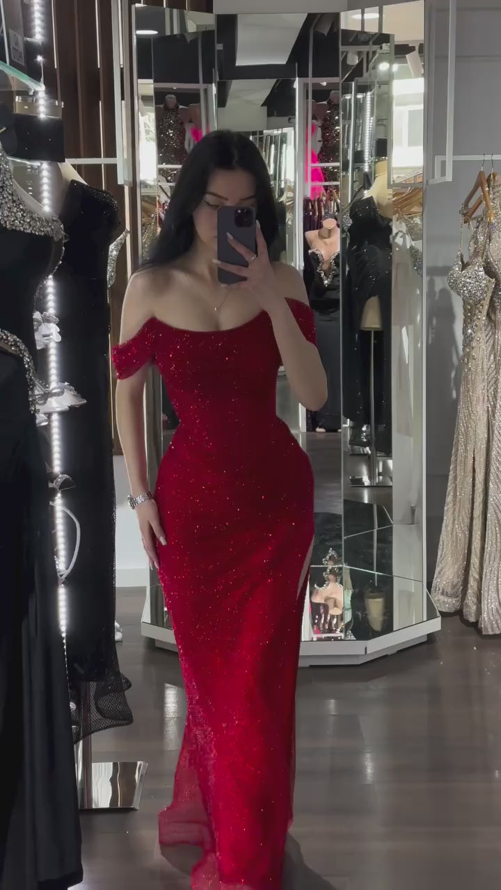 Red sequins simple elegant long evening dress prom dress party dress nv1817