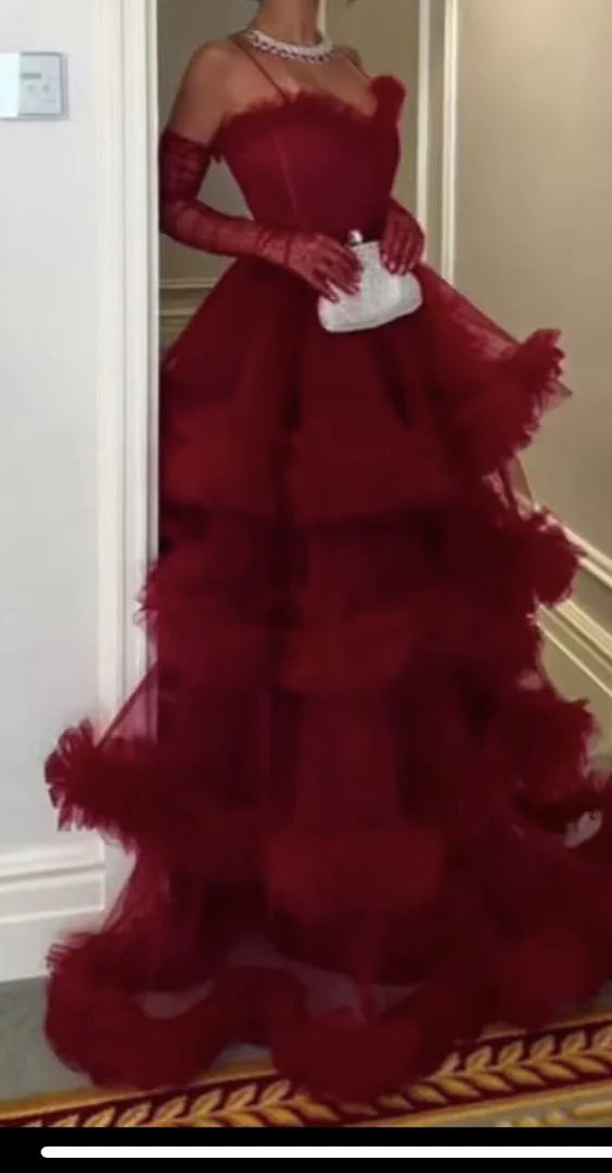 Red sexy long suspender tulle prom dress evening dress party dress nv2236