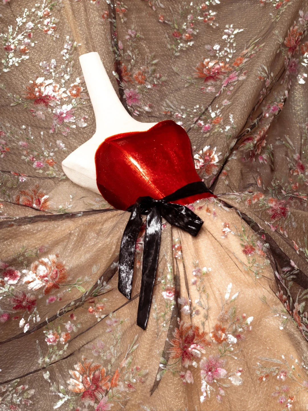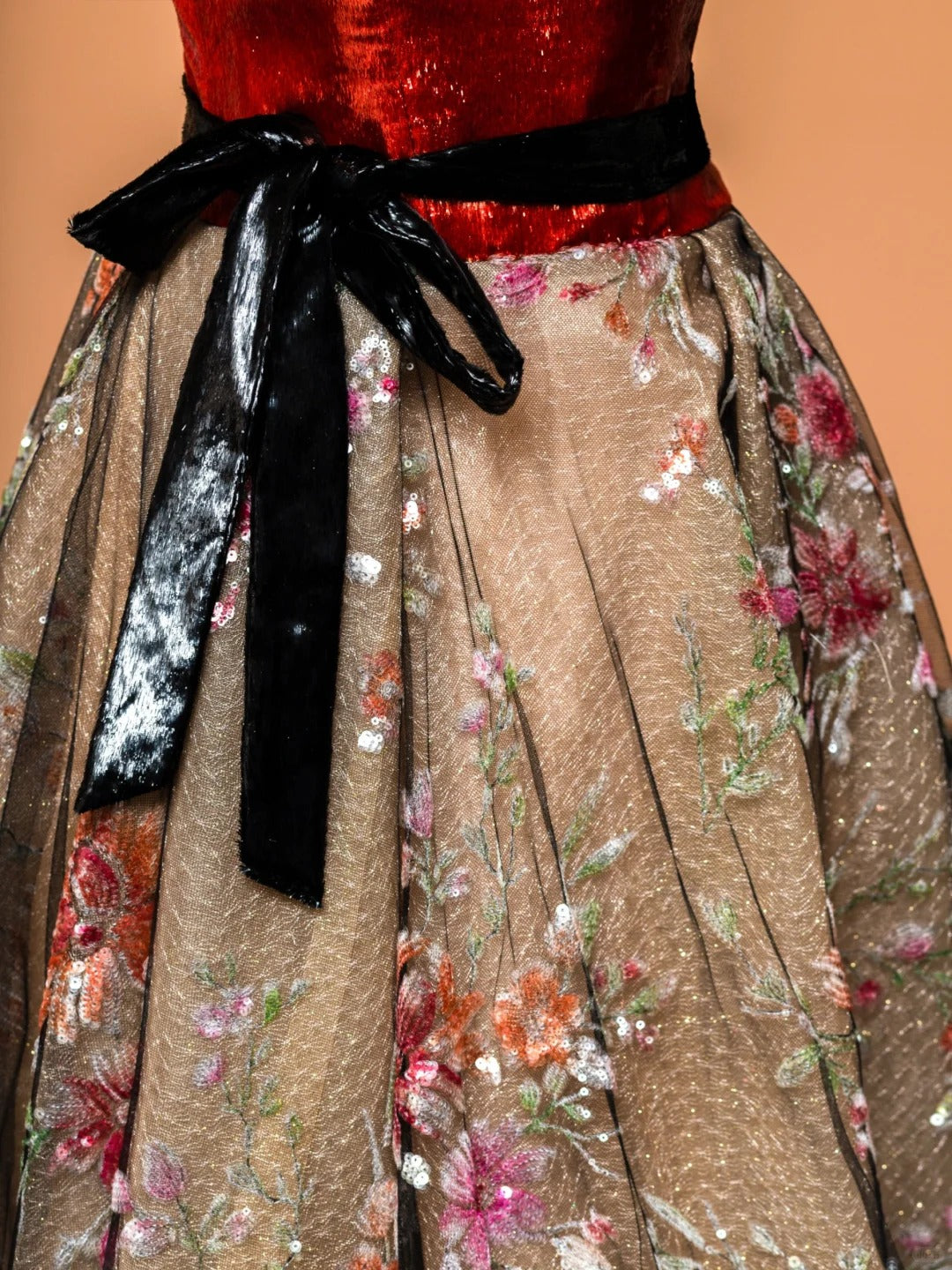 Red tube top floral elegant fashion long tulle Prom Dress evening dress party dress nv4746