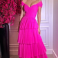 Hot Pink Off The Shoulder Prom Dresses Long Evening Gowns nv623