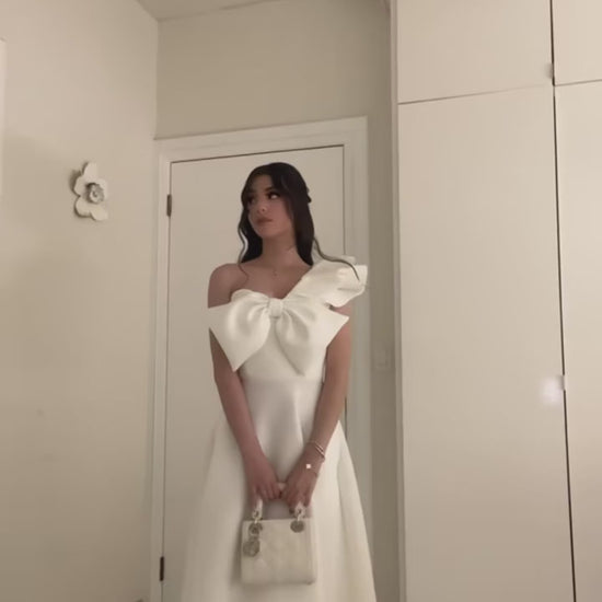 White solid color simple elegant bow long formal ball gown evening dress party dress statues dress to impress nv2581