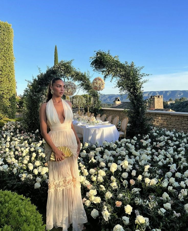 White V-neck stylish elegant lace long tulle ball gown evening dress wedding guest dress nv3335
