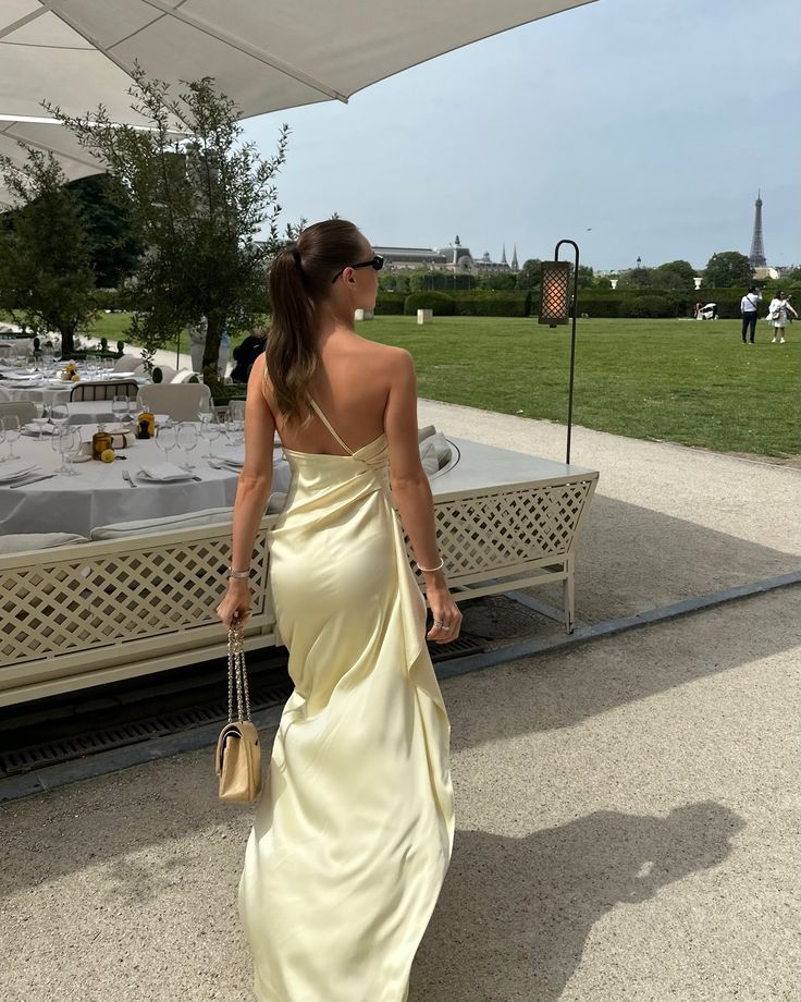 Yellow Fashion Off-shoulder Long Satin Slim Fit Ball Gown Evening Gown Party Dress nv3162